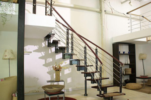 鋼結(jié)構(gòu)樓梯以支點(diǎn)少、承重高、造型多、技術(shù)含量高著稱,不易受立柱、樓面等結(jié)構(gòu)影響,結(jié)實(shí)牢固。樓梯所使用材料有方管、圓管、角鐵、槽鋼、工字鋼等,造型多種多樣。
